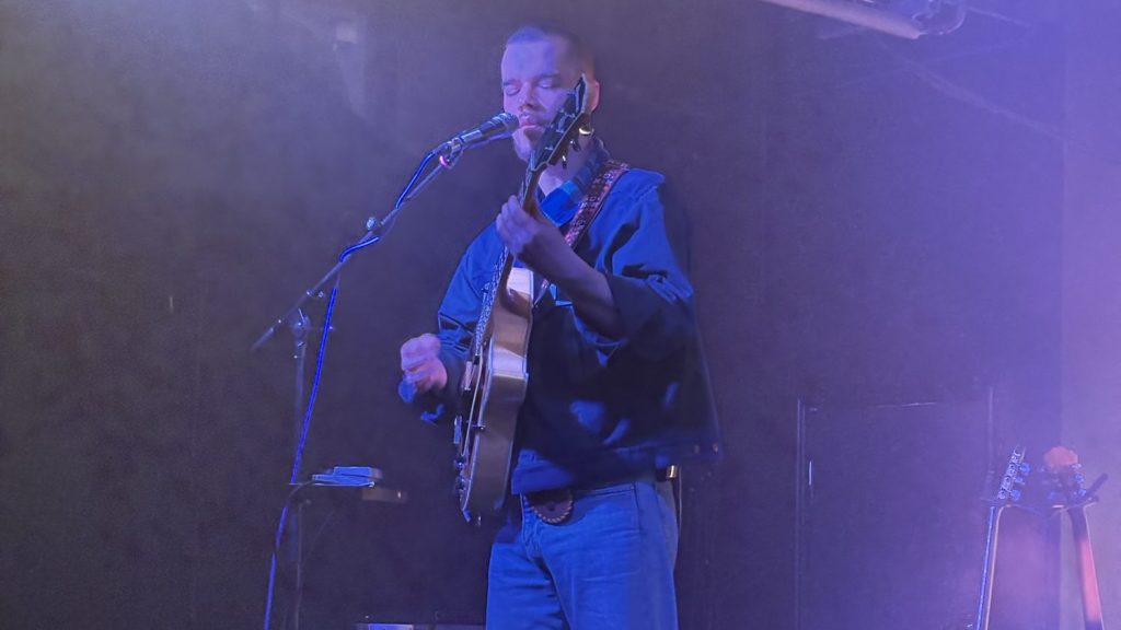 Ahead of seeing Jerome live for this first time, his skills with six strings, particularly when let loose with a solo, was always the element of his sound I was most excited for – and rightly so. This is, unsurprisingly, the absolute highlight of seeing Oscar Jerome live. An unbelievably talented player, his solos are wonderfully crafted. He isn’t the type of soloist to simply shroud his sound with relentless shredding and nothing but a showcase in how fast one can move their fingers over a fretboard. No – Jerome is a guitarist who clearly appreciates that there is so much more to a solo than that. He builds even the shortest of solos from the ground up, reaching beautiful climaxes before setting you back down again in whichever song he’s blessing at the time (if you can remember which one you are actually listening to by that point). His solos are made up of beautiful harmonies, melodies and licks, which transport you away into a dreamy, almost meditative soundscape – pairing perfectly with his signature atmospheric sound. And don’t worry, he can shred pretty well too.